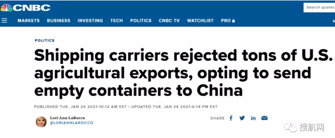 据CNBC的一项调查发现,在10月和11月期间,航运公司拒绝了价值数亿美元的美国农业出口集装箱,而是将空集装箱运往中国,以装满更具利润的中国出口商品。