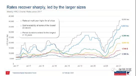 Howe Robinson Partners的集装箱船研究主管John D’ancona表示:"有些人认为2019年运价的增长是因为脱硫塔改造的问题,一些船舶退出了市场,运力削减;2020年运价的增长是因为新冠疫情,然而,基本面的稳步改善意味着市场已经走上了调节的道路。