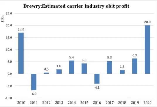 德路里预计,2020年行业营业利润有望超过200亿美元,超过过去 9年的利润总和,为近年来的最高水平。